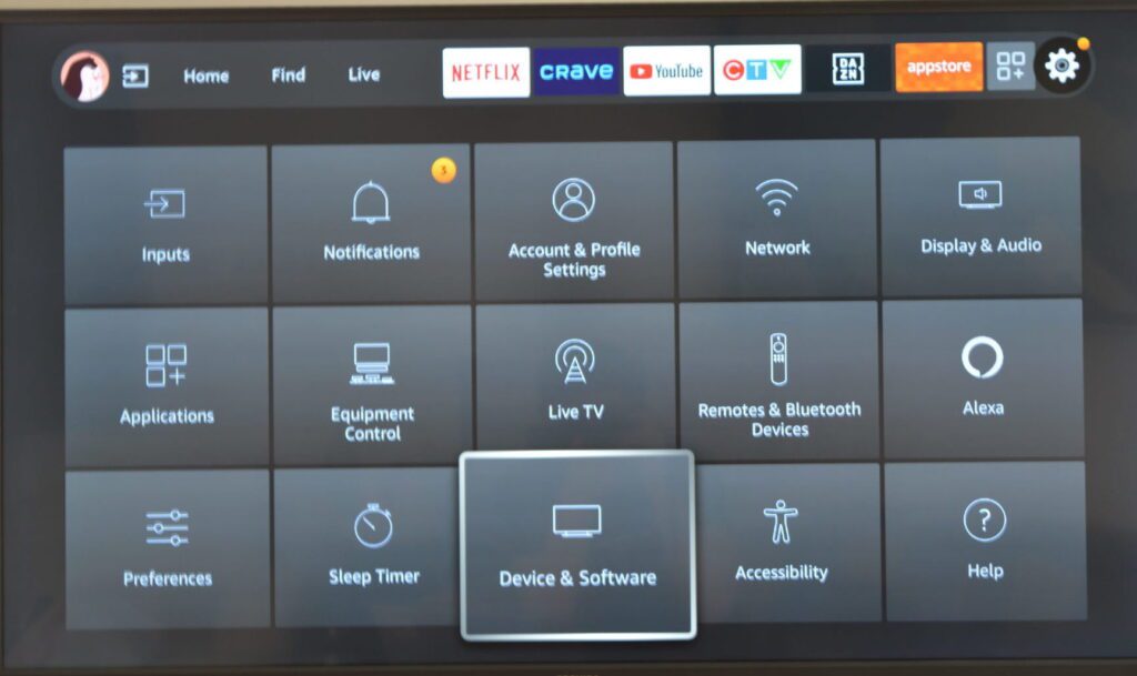 Paso 1: En tu Fire TV Stick, selecciona Ajustes. A continuación, selecciona Aplicaciones.