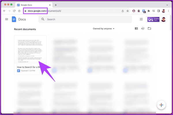 Paso 1: Vaya a Google Docs desde su navegador preferido en su computadora. Navegue hasta el documento en el que desea realizar una búsqueda de palabras.